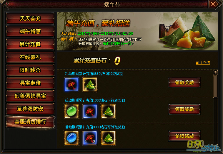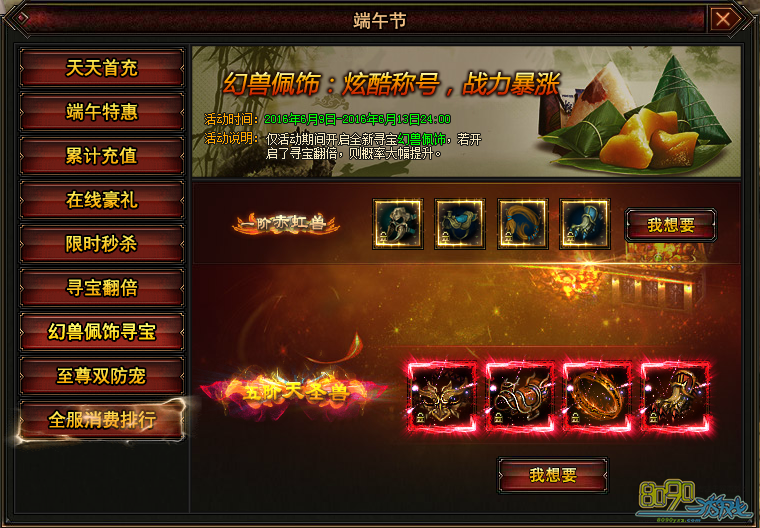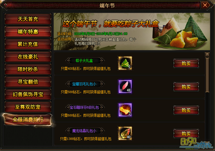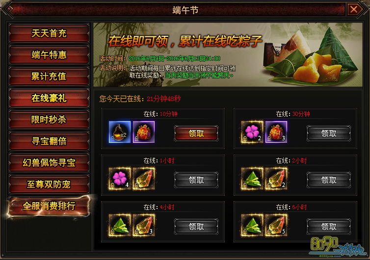 搜索"8090网页游戏"端午节活动