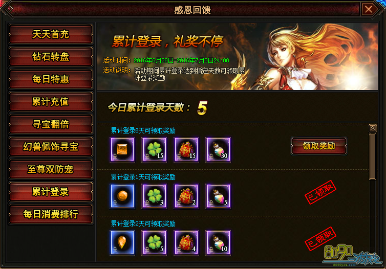 活动期间累计登录达到指定天数可领取累计登录奖励