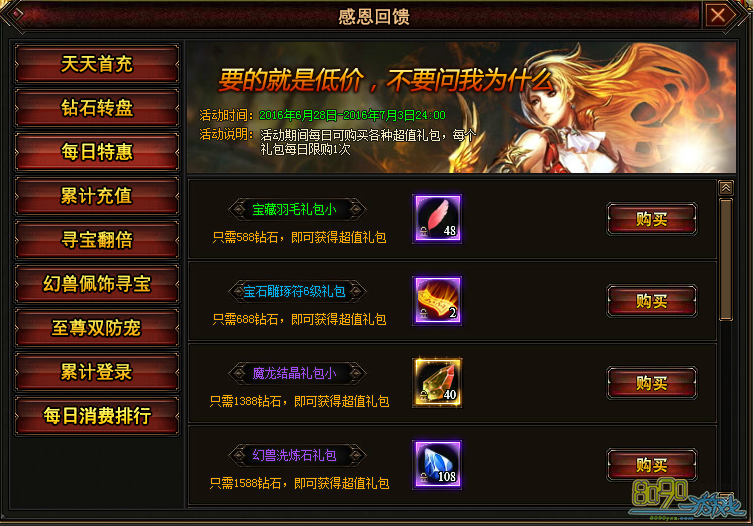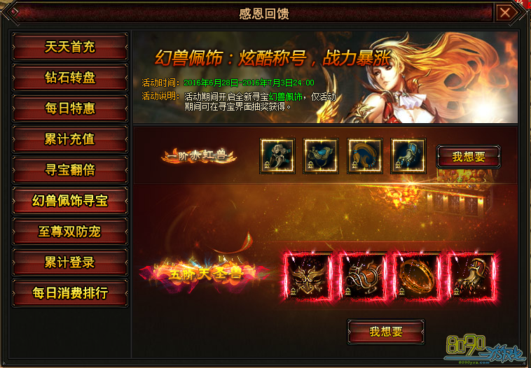 • 魔唤6月28日-3日感恩大回馈 每日首冲奖励领翻天