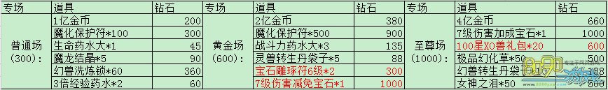 第1名:神兽合晶*1、超级铭刻符*1、8级伤害减免宝石*2