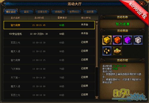 你也想和小一休一样聪明嘛?那就快来8090幻兽起源的智力竞赛吧,赛出风格,赛出水平,拿下第一!智力竞赛一天可以参加两次,时间分别是13:00-13:15和21:30-21:45,千万不要错过哦。