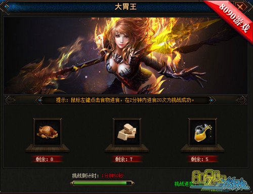在8090幻兽起源中也有一个活动,绝对是吃货们的福音,那就是大胃王。如果你还在羡慕韩国的主播们直播吃美食还能有钱拿的话,那么这个活动你就千万不能错过,合理的运用小技巧也是获胜的关键哦!