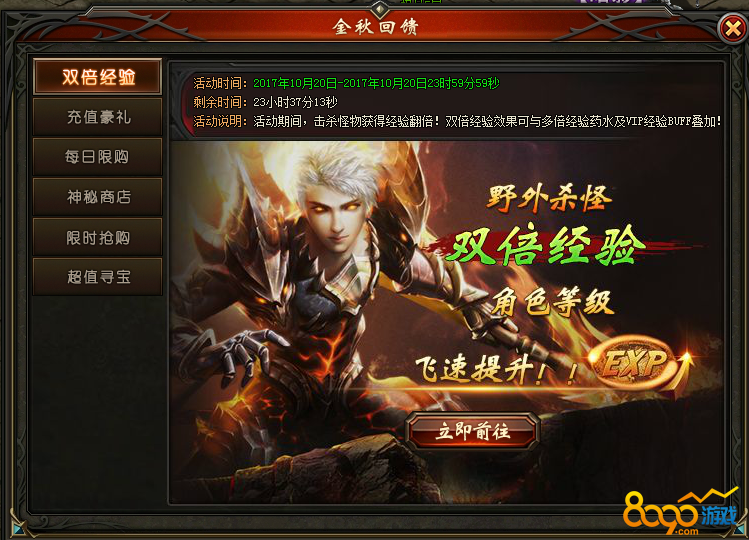 活动说明:活动期间,击杀怪物获得200%经验