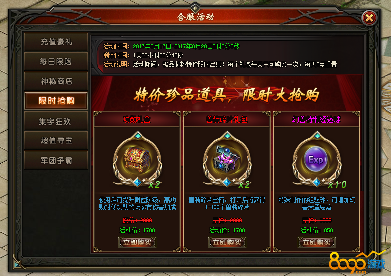 活动说明:活动期间,每天0点刷新超值折扣珍贵道具;