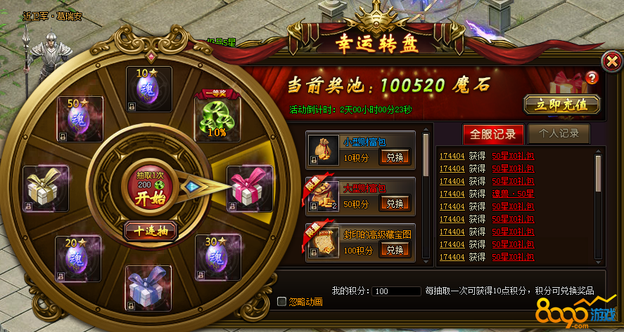 2. 转动转盘可获得珍品奖励,幸运儿还可获得一定额度奖池中的魔石!