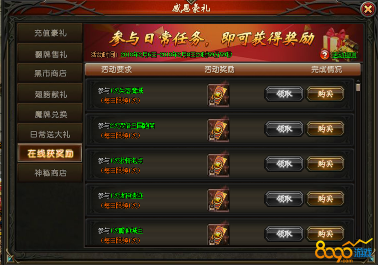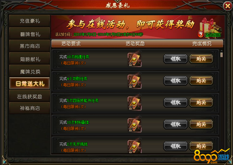 活动说明:活动期间,完成指定任务,或直接消耗一定魔石即可领取活动奖励