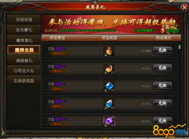 活动说明:活动期间,拥有魔牌道具可领取活动奖励