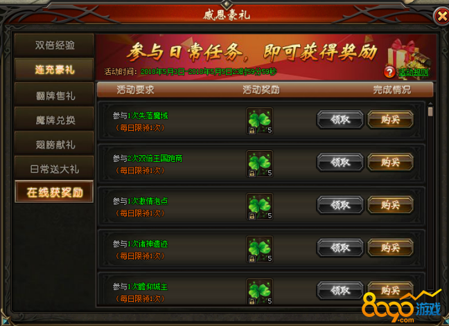 活动说明:活动期间,完成指定任务,或直接消耗一定魔石即可领取活动奖励