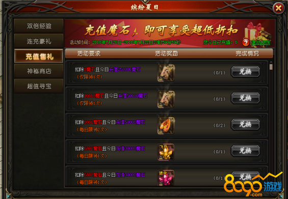 活动说明:活动期间,充值一定数额魔石且消耗少量魔石可领取活动奖励