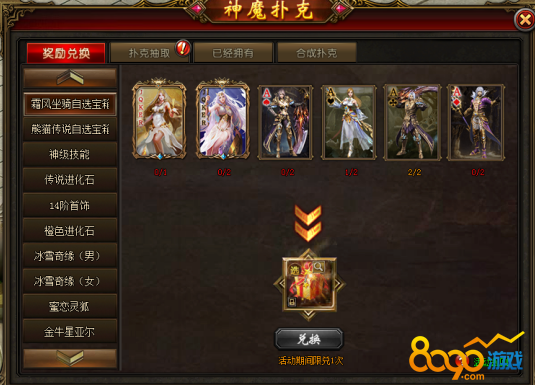 扑克兑换:收集指定扑克组,即可兑换各种极品奖励