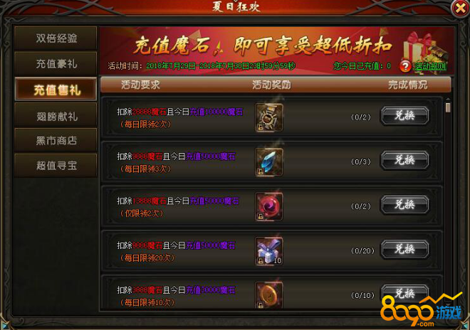 活动说明:活动期间,每天充值达到指定数额魔石可领取活动奖励