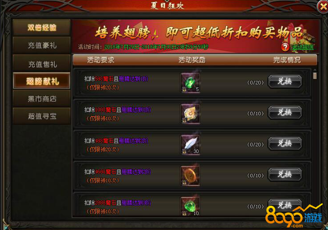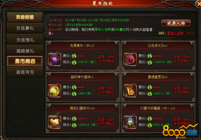活动说明:活动期间,每日使用黑市入场券或888魔石可入场购买超值道具;