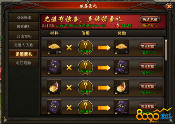 4、 每日0点重置积分、倍数及奖励,请及时领取