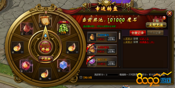 1. 活动期间,消耗一定魔石可进行转盘抽奖,每次抽奖将为奖池填充一定数额魔石