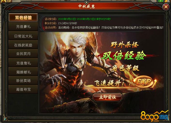 活动说明:活动期间,众神宝藏大放送,橙色幻兽碎片、8阶魔魂震撼来袭!高阶装备抽取概率翻倍!