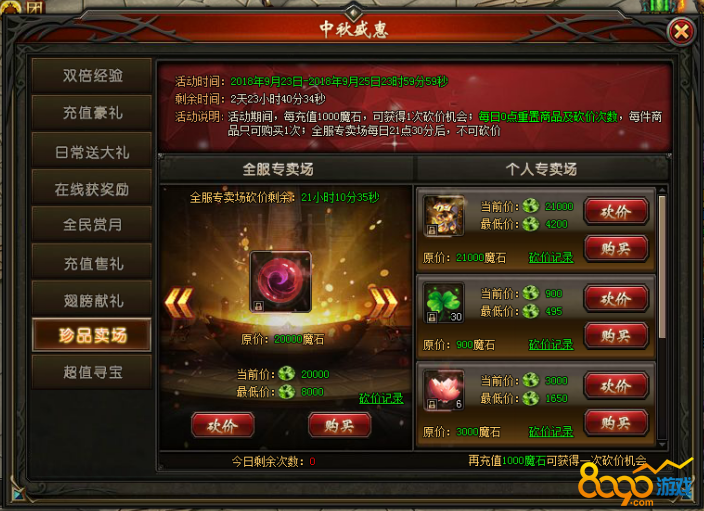 1) 活动期间,每充值一定魔石求,可获得1次砍价机会