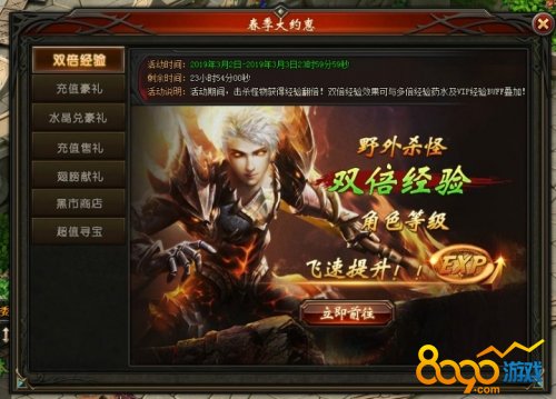 活动说明:活动期间,众神宝藏大放送,橙色幻兽碎片、8阶魔魂震撼来袭!高阶装备抽取概率翻倍!
