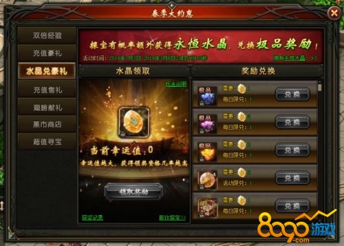 3.获得领奖资格,可领取水晶;并重新累计当前幸运值