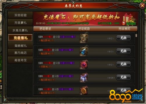 活动说明:活动期间,每天充值达到指定数额魔石可领取活动奖励