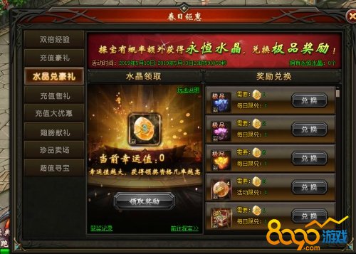 3.获得领奖资格,可领取水晶;并重新累计当前幸运值