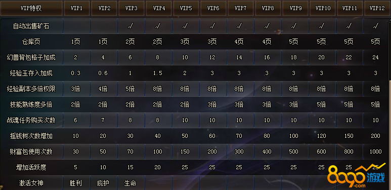 搜索"8090网页游戏"每个游戏都会有玩家充值,那么这些充值的玩家又会得到什么好处呢?从而就有了一个VIP系统,根据玩家充值设定一套VIP等级,不同等级的VIP玩家可以有不同的福利和特权,那么在魔域永恒这个游戏里的VIP系统是怎么设定的呢,下面小编就为大家介绍一下吧!