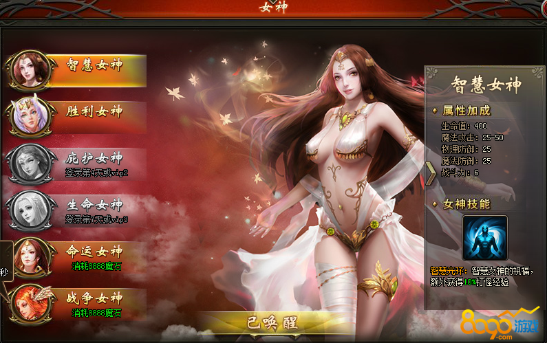 搜索"8090网页游戏"魔域永恒中35级时就会开启女神系统,不同的女神会有各种属性,下面小编就为大家分享下女神激活的条件。