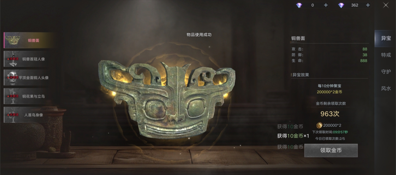 收集奇珍异宝,每个异宝会带来不同的异宝效果。