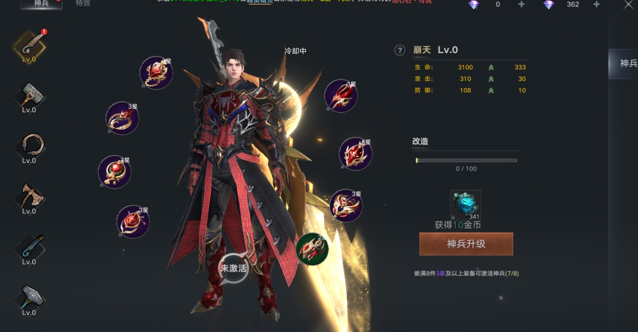 集齐装备可激活神兵,可增加较高属性,提升战斗效率。可持续进阶升级改造。】