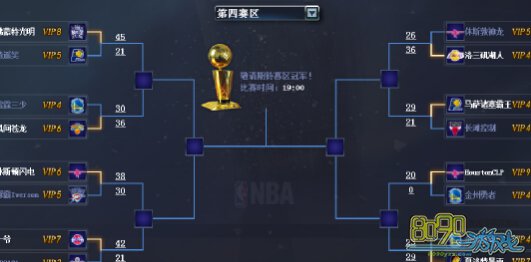 2015年度巨作3D篮球页游《NBA范特西》将于1月16日开启首届跨服冠军杯赛.系统自动抓取跨服实力排行前256名玩家报名并排出第一轮赛程,次日晚上19:00开始第一轮赛程,每天一轮一共八轮.比赛分为14个赛区,采取单败淘汰制,失败即淘汰。
