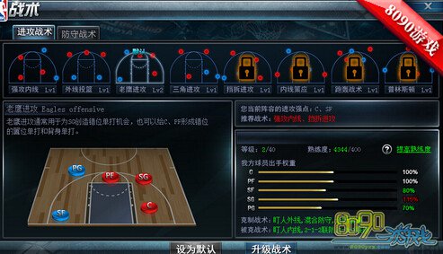战术需要指定数量的战术熟练度来升级,玩家可以通过两个途径获取战术熟练度:进行任意比赛和在联盟建筑处进行战术训练。根据联盟建筑等级开放不同数量的训练馆,最多开放4个训练馆,可供玩家同时训练4个不同的战术。