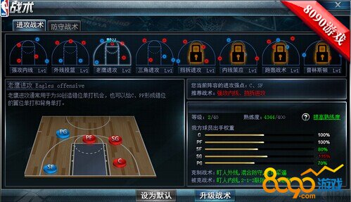 搜索"8090网页游戏"孙子兵法有云,“上兵伐谋”,网页游戏特别是竞技类游戏,比拼的不单单是等级和游戏道具,更重要的是战术的运用。在8090NBA范特西中,合理的使用攻防战术转换,才可以实现以弱胜强的终极目的哦。