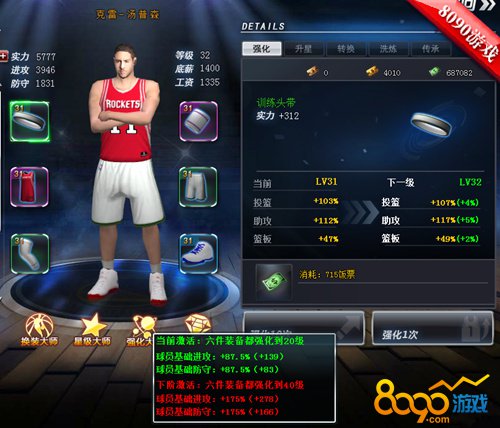 搜索"8090网页游戏"在8090NBA范特西,要想成功的称霸球场,除了球员自身的能力外,还要注意配备上良好的球员装备,这些装备当然也是需要不断强化的,只有这样才能保证球员不断的进步,话不多说,接下来,就一起来游戏里看看装备强化的玩法!