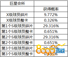 应国家有关法律规定,8090NBA范特西对游戏内物品产出概率公布如下:
