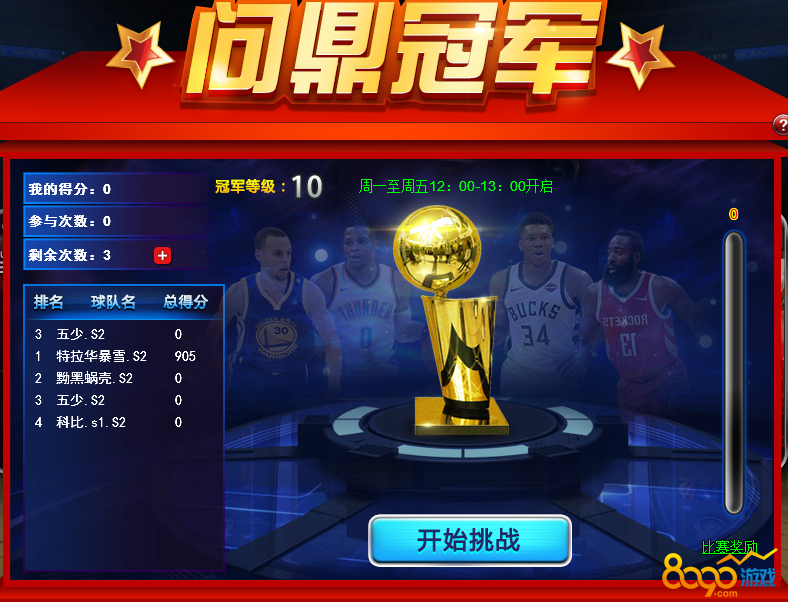 1、 新增问鼎冠军比赛,周一-周五12:00-13:00挑战该比赛可以获得丰厚奖励。
