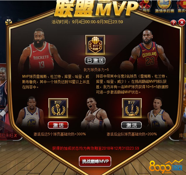 2)一共有三种状态依次完成对应条件即可激活,必须激活联盟MVP才能激活MVP奖杯,激活MVP奖杯才能参与挑战巅峰MVP;