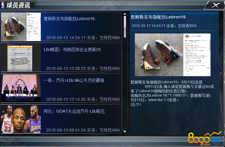 2、 球员系统新增球员资讯,在球员界面可查看相关NBA资讯内容;