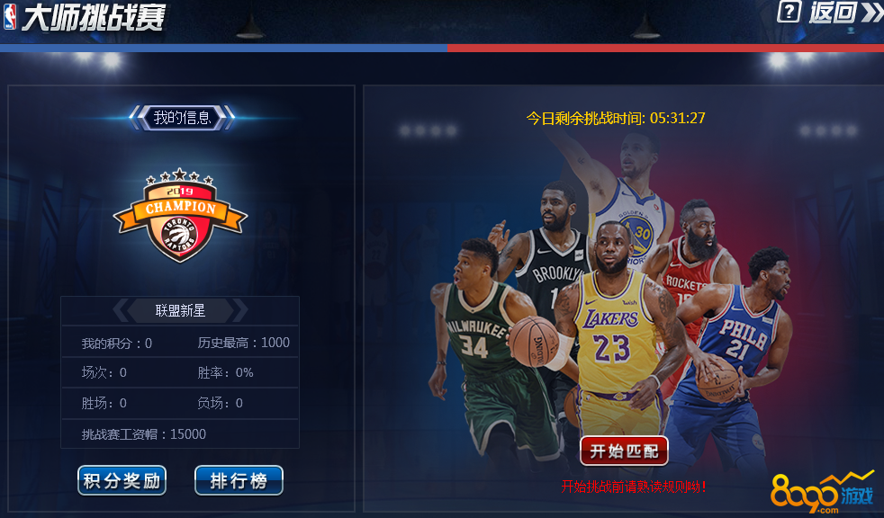 1. NBA现实比赛或者夏季赛比赛场次不少于3场时当日开启大师赛,开启时间为每日17:00~23:30