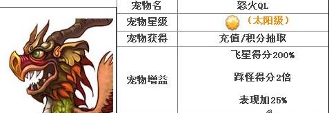 怒火麒麟飞星得分是200%,踩怪得分2倍,表现加25%,对女性角色有加成哦,而且会有钻石产出哦。