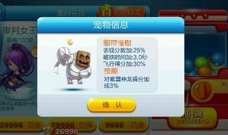 绷带怪咖的表现分数加25%,磁铁时间加3.0秒,飞行得分加30%,而且对紫翼神龙得分加成有3%。