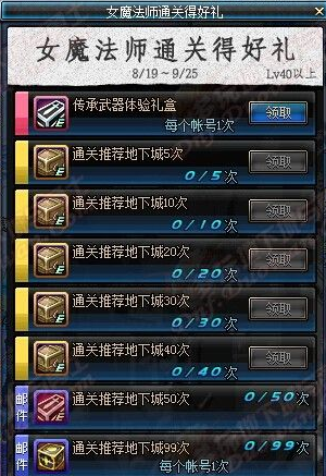 女法师2觉的活动是前面所有的2觉活动还要多的,而送异界盒子的活动和男枪2觉的活动一样的,都是单角色刷99次推荐地下城能够获得。而大家有了上次的经验应该都知道哪里刷比较快了吧。
