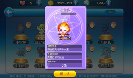 新精灵小蜜桃只有登场的效果,也就是说不登场时没有任何加成的,登场效果是将金币变化为高分的水果,金币啊,如果配合点石成金的加成,超厉害的有木有。绿野仙踪吃到任意动物头像加72分,不登场的效果是吃到任意动物头像加20分。