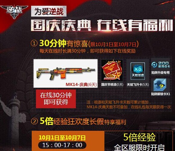 1. 活动期间(10月1日至10月7日)每天登录游戏后并保持30分钟的游戏在线,即可获得一份在线礼包,每个Q号每天仅限获得一次,但活动期间可满足要求累计礼包;