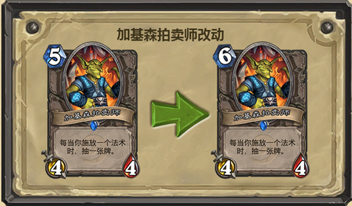 搜索"8090网页游戏"大家都知道之前加基森卡牌基本上在前期就是法系职业和盗贼的刷牌神技啊,不少奇迹贼都是通过这张牌刷到爆发点的,下面小编就为大家介绍下炉石传说新扩展包加基森拍卖师被削弱了吗 加基森还可以带吗?