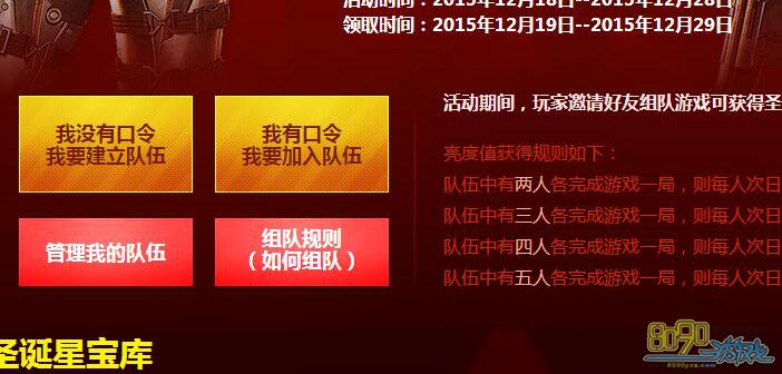 玩家们邀请好友组队的话,就可以获取到圣诞星啦,就可以点亮圣诞幸运星,去兑换道具或者抽奖也是可以的哦,5颗圣诞星=1双旦积分。