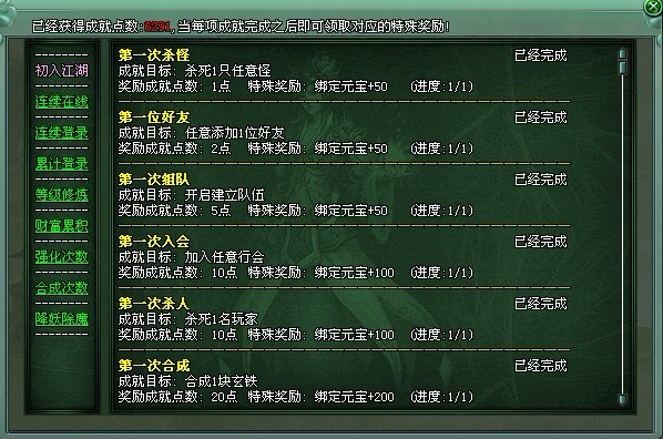 玩傲视遮天获得成就有很多途径,每天登陆,在线时间,等等,还有参加活动,炎黄战场啊,打BOSS什么的也会有成就点数。