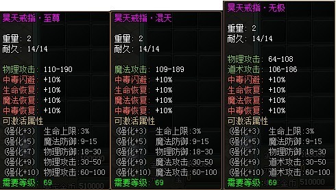 昊天戒指:主要在昊天魔君、神威天魔、穷奇等BOSS等掉落