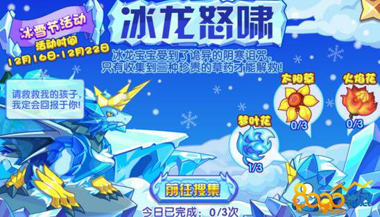 冰龙宝宝受到了诡异的阴寒诅咒,按下活动图标,前往指定地图就能找到梦夜花拯救冰龙宝宝了。