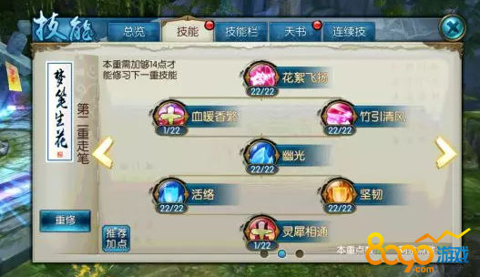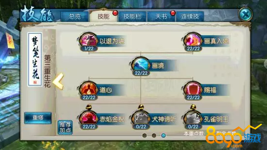 如果是会武等单挑的话推荐引蝶入梦,主要用来免控然后取消再反手,还能多一个输出技能;如果是跨服战的话就必须点满灵犀相通,不适合团战,禁疗效果也不理想。