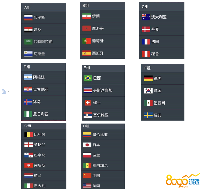 搜索"8090网页游戏"2018年世界杯将在2018年6月14日星期四开始A组第一轮比赛,随之世界杯的赛程也拉开了序幕。