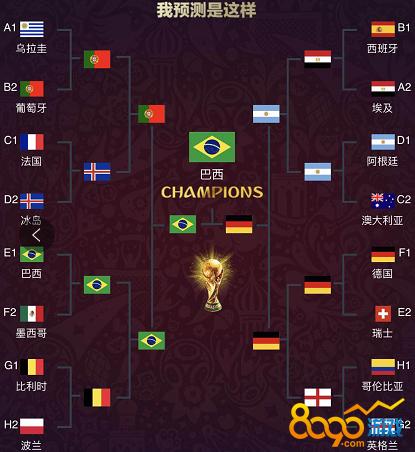 这是这届世界杯每个小组的参赛情况,大家都可以来预测一下这届的冠军是谁,下面就是小编对世界杯冠军之路的预测,大家可以来看看。